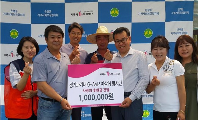 경기과기대 G-AMP 이삼봉사단은 시흥시 관내 저소득층을 위해 꾸준히 선행에 앞장서는 단체로 유명하다. 이날도 은행동 저소득 독거어르신들의 복날맞이 행사지원을 위해 후원금 100만원 기탁했다.