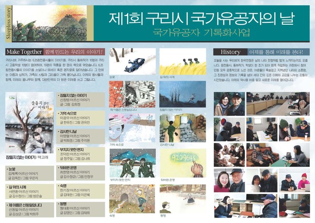 시는 미래의 주역인 젊은 세대들이 꽃다운 청춘에 목숨을 담보로 이 나라를 지켜내신 순국선열들과 참전용사 어르신들의 위훈을 기억하고, 나라사랑의 소중함을 일깨우기 위한 마음을 담아 그날의 이야기를 듣고 기록하는 ‘구리시 국가유공자 기록화사업’을 추진했다.