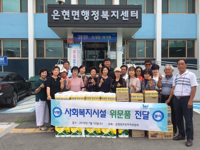 양주시 은현면 주민자치위원회는 지난 10일 은현면 도하리 소재 ‘에바다집선교회’를 찾아 위문품을 전달하는 등 행복나눔을 실천했다.
