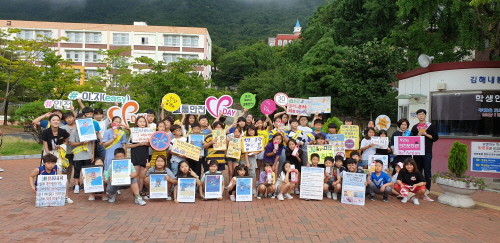 김해시자원봉사센터는 11일 내동초등학교 학생, 교사 70명과 스쿨존 교통사고 예방을 위한 ‘우리는 안전보안관’ 캠페인을 했다고 밝혔다.