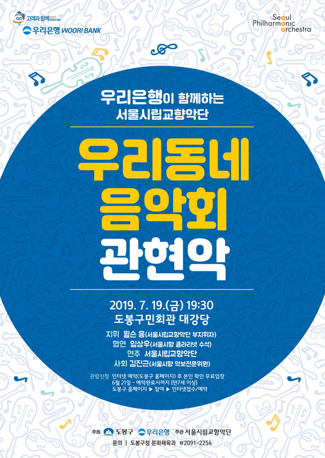 도봉구는 오는 19일 오후 7시30분 도봉구민회관 대강당에서 서울시립교향악단 단원 70명이 연주하는 ‘우리동네 음악회 관현악’ 공연을 개최한다.