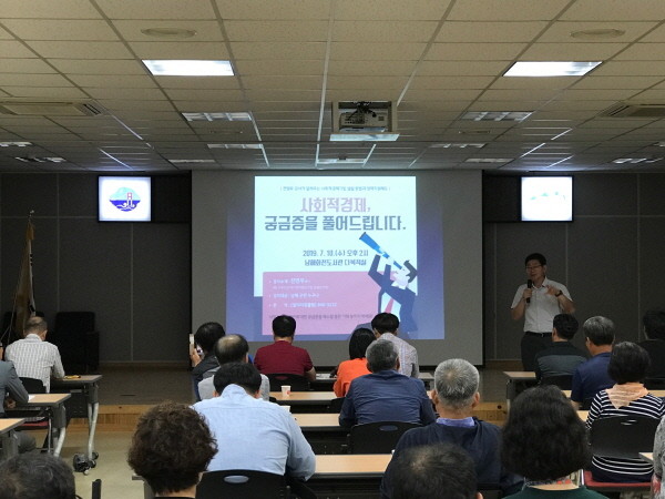 남해군이 지난 10일 남해화전도서관에서 사회적경제 군민 특강을 개최해 사회적경제 기업을 준비하는 군민들에게 알찬 정보를 제공했다.