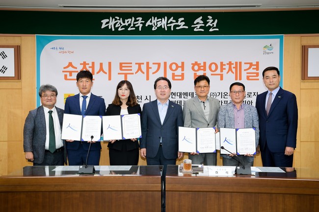 순천시에서는 민선7기 시정 목표인 ‘더 넉넉한 경제도시’를 만들기위해 투자환경 조성에 용이한 제도개선과 함께 공세적인 투자유치 활동으로 ㈜현대엔테크, ㈜썬테크, ㈜기온테크놀로지, ㈜카프로코리아 4개 기업과 191억원 규모의 투자협약을 이끌어내 107명의 고용을 창출하는 성과를 거뒀다.