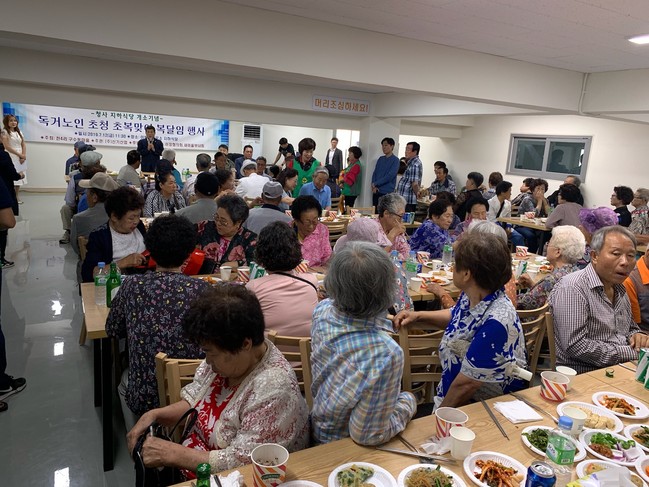 이날 각 마을 이장과 새마을부녀회들이 나와 관내 홀로어르신과 각 마을 노인회장 등 90명의 어르신에게 정성껏 준비한 삼계탕, 양장피, 잡채, 전 등의 음식을 대접했다.