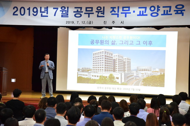 진주시는 권영규 전 서울특별시 행정부시장을 초청해 12일 오전 10시 진주시청 시민홀에서 진주시 공무원 200여명이 참석한 가운데 직원 교양교육을 실시했다.