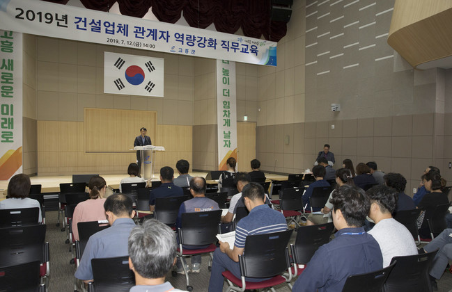 고흥군은 12일 군청 우주홀에서 관내 전문건설업체 대표자와 회계담당자 등 200여 명을 대상으로 ‘2019년 전문건설업 관계자 역량강화 직무교육’을 실시했다.