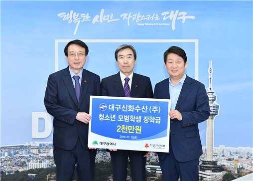 고중근 대구신화수산 대표는 “지역과 나라를 이끌 젊은 인재육성과 교육발전에 힘을 보태고자 장학금을 기탁했다”며 “지역 내 형편이 어려운 학생들이 꿈과 희망을 잃지 않고 학업에 정진 할 수 있도록 지속적으로 후원하겠다”고 말했다.