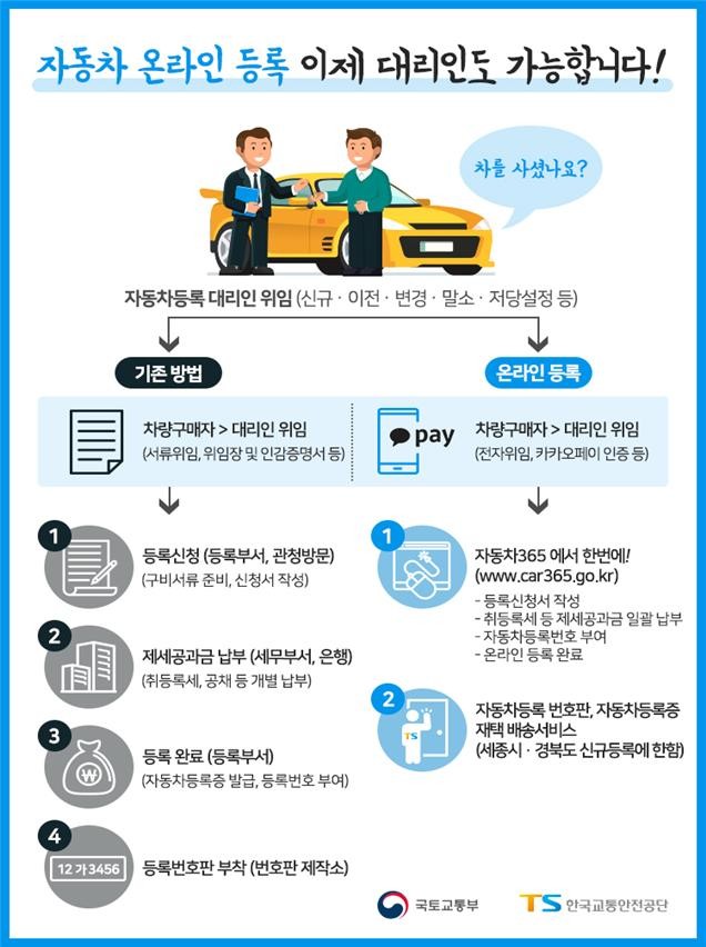 국토교통부와 한국교통안전공단은 15일부터 차량 구입 시 발생하는 불편해소를 위해 “대리인도 자동차 온라인 등록을 이용할 있도록 서비스를 개선했다”고 밝혔다.
