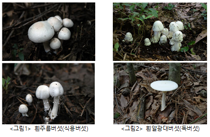 농촌진흥청 국립원예특작과학원 버섯과 공원식 과장은 “검증되지 않은 야생버섯 섭취는 치명적인 인명 사고로 이어질 수 있으므로 느타리, 팽이, 영지, 표고 등 농가에서 생산한 안전한 버섯을 먹도록 한다.”라고 전했다.