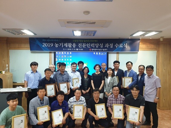 광주광역시농업기술센터는 15일 ‘신중년 일자리 프로젝트’ 교육생 18명을 대상으로 ‘농기계 활용 전문인력양성 과정’ 수료식을 개최했다.