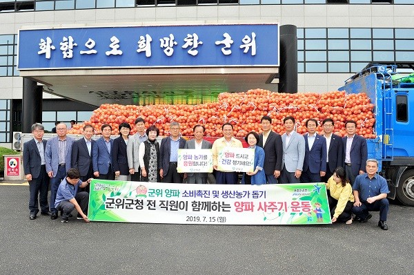 또한, 15일 군위군청 주차장에서 개최한 ‘양파 1인 1망 사주기’ 행사에서는 김영만 군수와 공무원 427명이 참여해 양파 974망을 구매하기도 했다.
