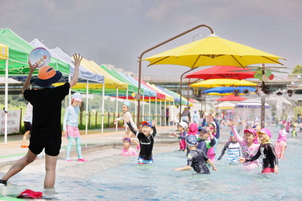 안양천 퐁당퐁당 어린이 물놀이장에서 평일 오전시간대에 물놀이 안전교육과 물놀이 활동, 생태교육 등을 진행한다.