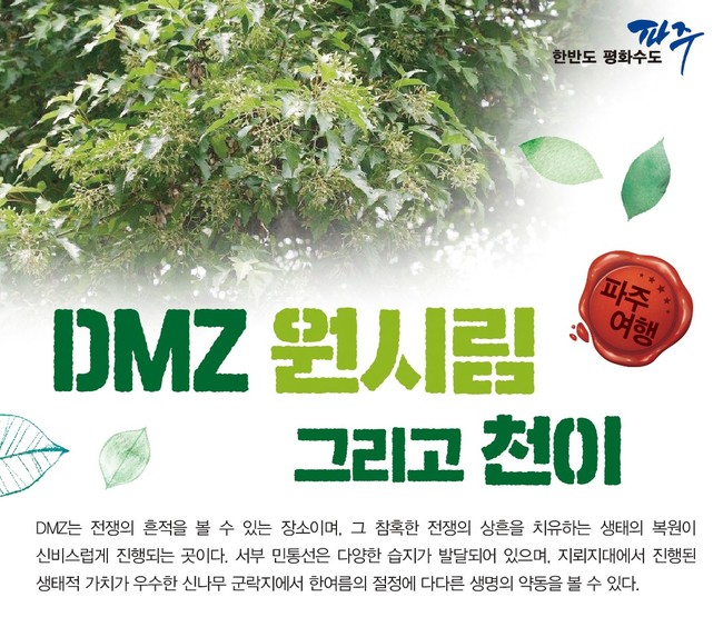 파주시가 DMZ 생태보존을 위해 매월 1회씩만 진행하는 ‘파주 DMZ평화생태 여행’이 달마다 다른 콘셉트와 체험프로그램으로 DMZ를 체험하는 관광객의 오감을 만족시키고 있다.