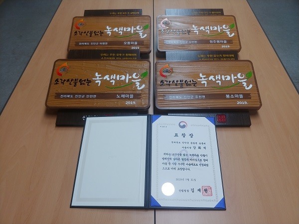 이들 마을은 지난 2월부터 5월까지 이장을 중심으로 마을주민 모두가 자발적으로 논·밭두렁, 영농부산물 등의 불법소각 근절에 앞장서 산불 발생을 사전에 차단하고 녹색마을 서약을 성실히 이행했다는 평가를 받았다.