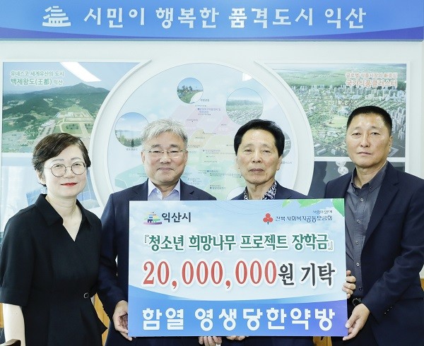 함열 영생당한약방이 17일 익산시를 방문해 청소년희망나무프로젝트 장학금으로 2천만 원을 기탁했다.