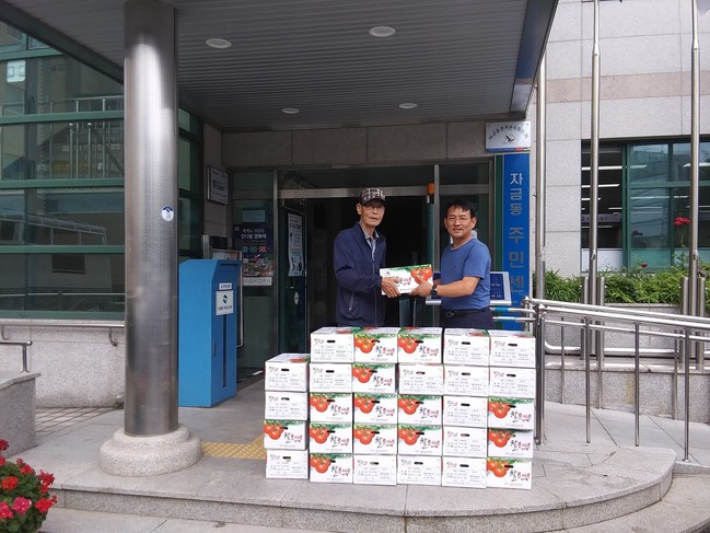 이선노 자금동 통장협의회장은 지난 16일 자일동에서 직접 기른 토마토 30상자를 관내 경로당에 제공했다.